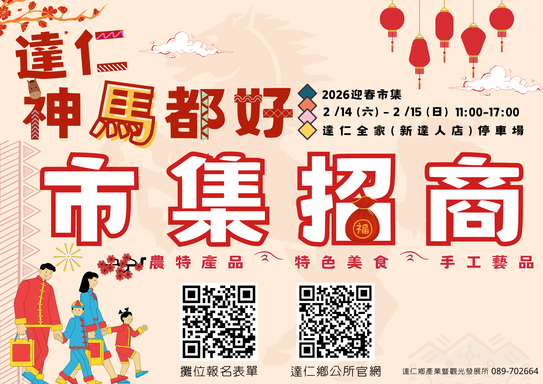 臺東縣達仁鄉115年度「神馬都好」迎春市集招募
