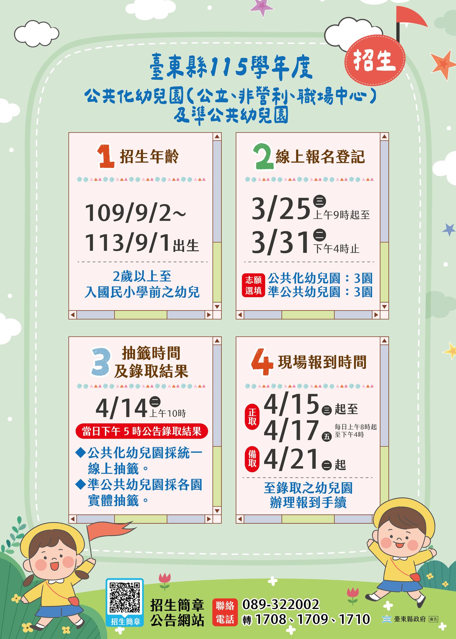 三、報名方式:請至臺東縣-幼兒園招生平台完成線上報名。