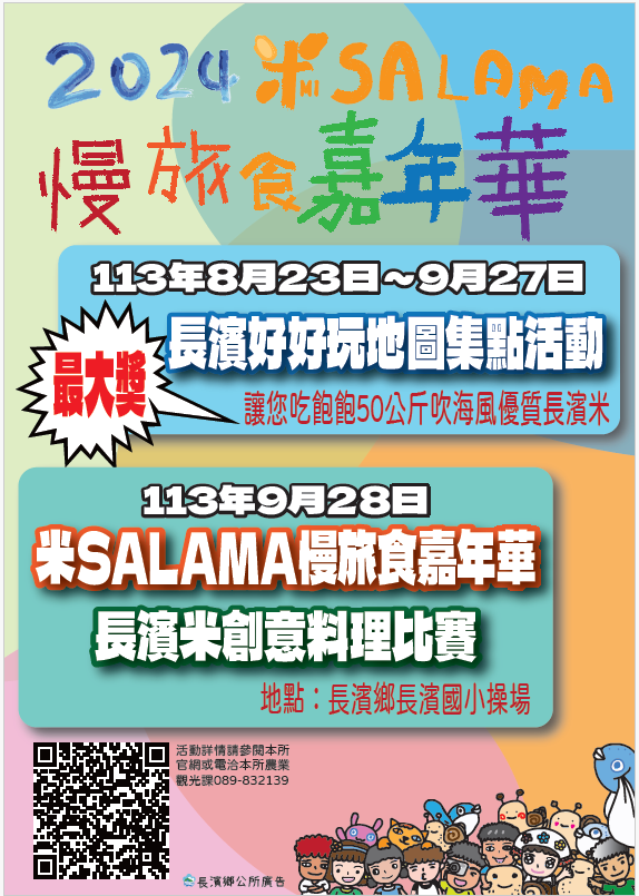 | 主旨: | 檢送本鄉「2024米SALAMA!長濱慢旅食嘉年華」系列活動電子廣告頁1份,惠請協助置臉書粉專、官網宣傳並轉知所屬單位,至紉公誼,請查照。 |