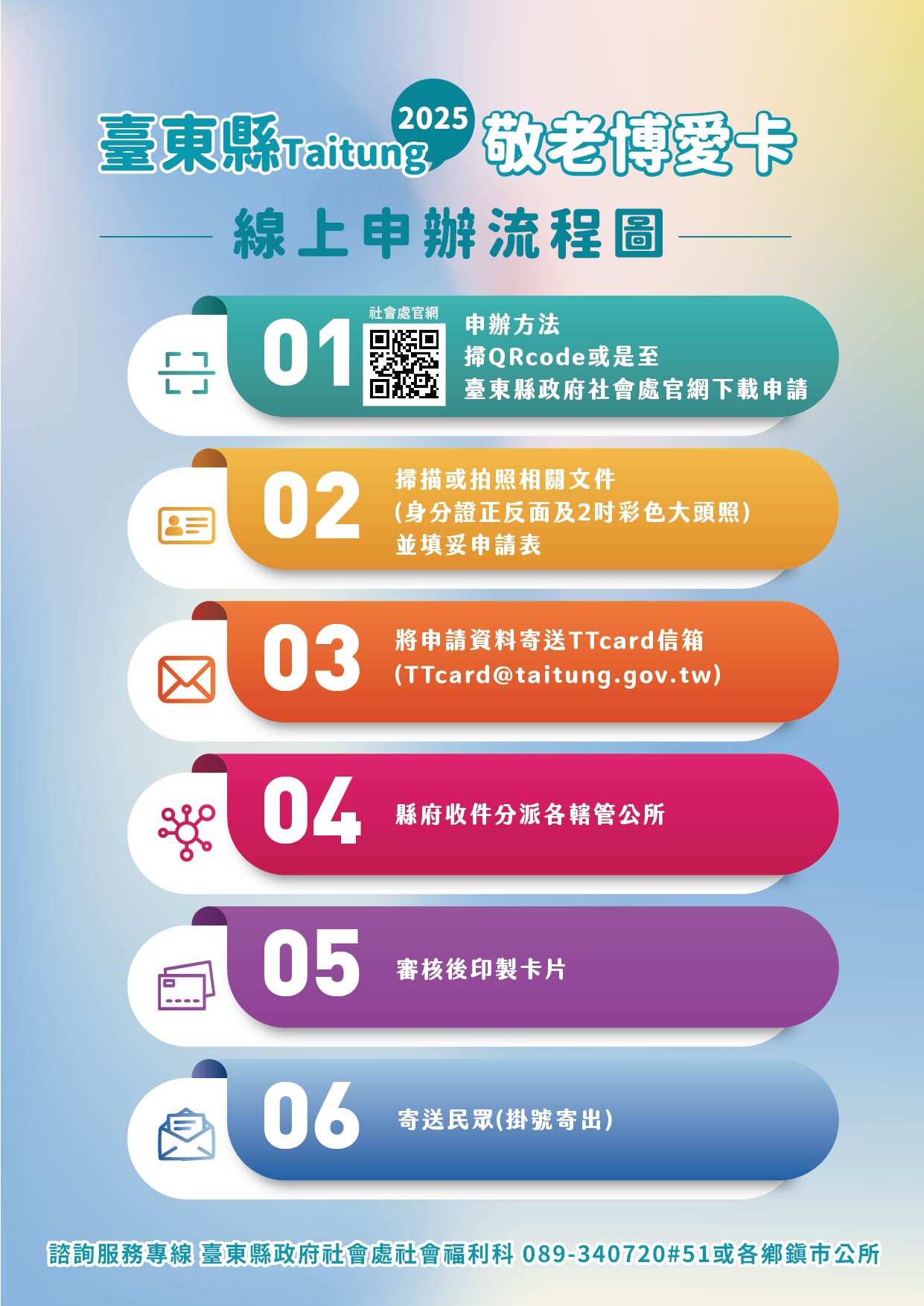 轉知臺東縣政府辦理臺東縣敬老博愛卡新增線上申辦方式文宣