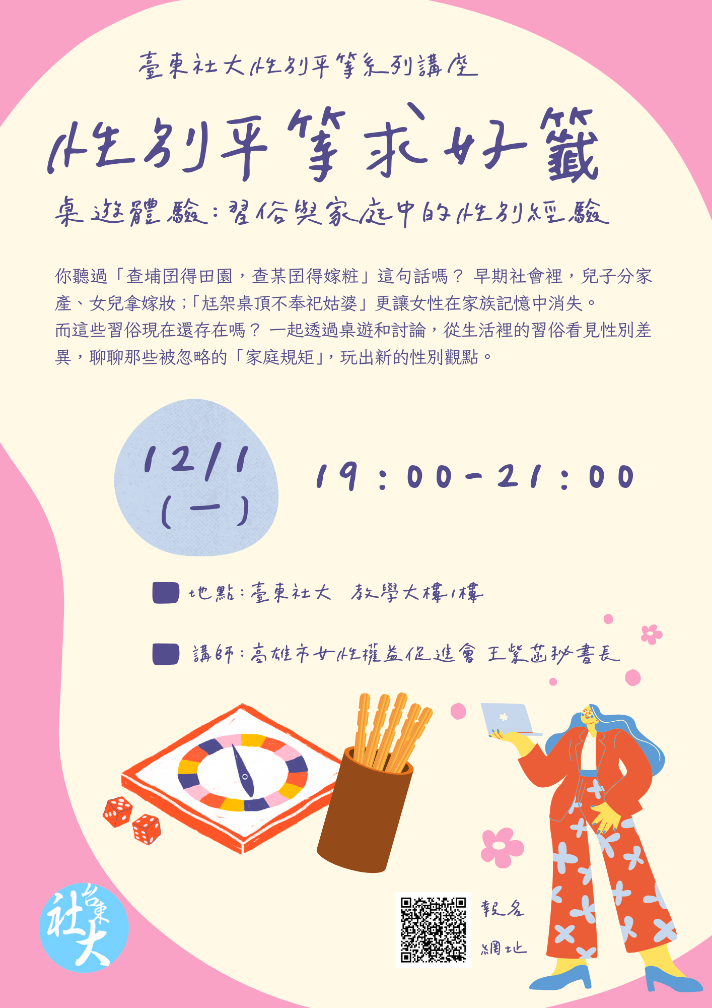 【轉知】臺東縣社區大學辦理「性別平等」系列講座宣傳DM