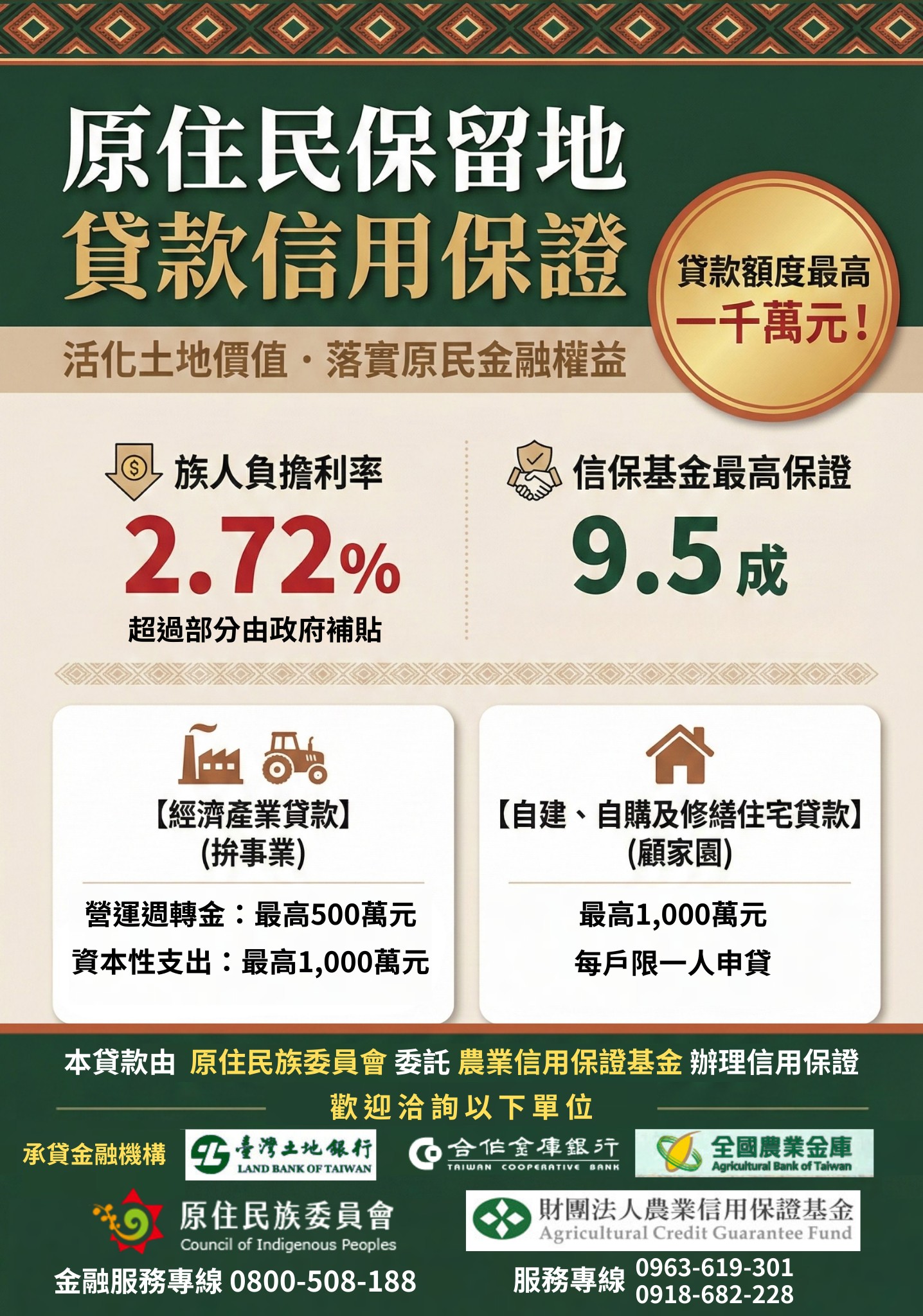 【公告】原住民族委員會 辦理「原住民保留地貸款信用保證業務」政策說明會一案