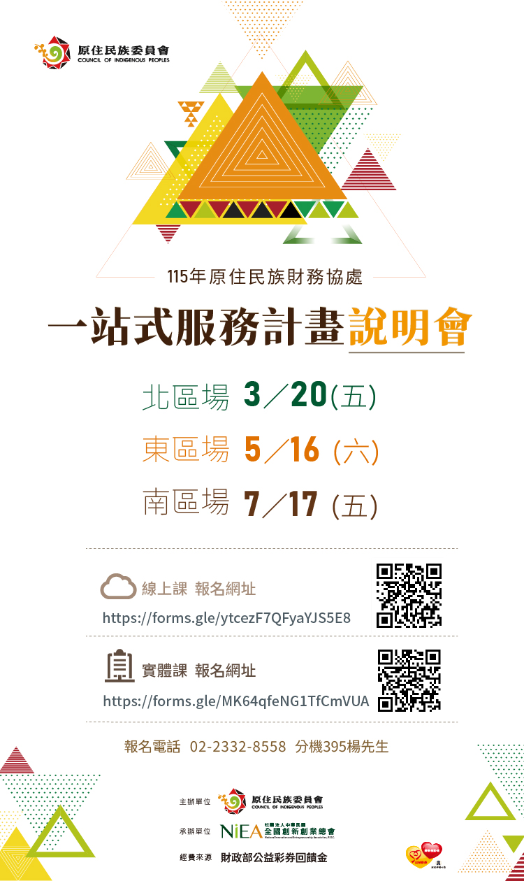 原住民族委員會「財務協處計畫說明會」開始報名囉!